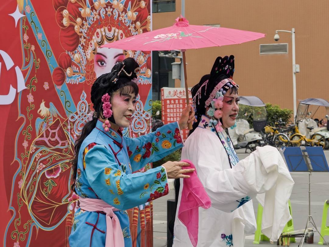 活动特邀专业京剧演员团队,现场演绎《梨花颂》《太真赏月》等经典选段。演员们精湛的唱腔、华美的服饰与细腻的身段表演,引来观众阵阵掌声。表演间歇,演员还现场示范基础身段与唱腔,邀请居民上台互动体验。不少居民在指导下模仿手势、步法,亲身感受京剧艺术的独特韵味。