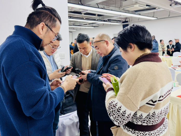 企业代表们在添加联系方式。 (黄凌屹 摄)