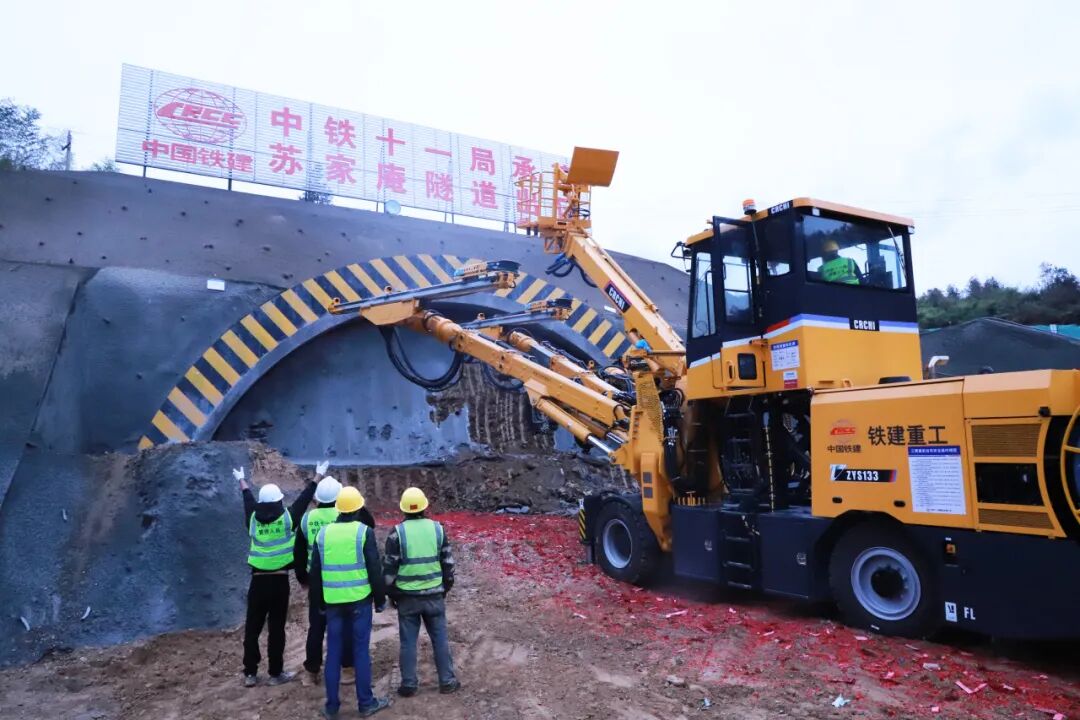 针对复杂地质条件,项目团队结合苏家庵隧道出口围岩特征及台阶施工工法专项选型,采用全电脑三臂凿岩台车、拱锚一体台车、钻锚注一体台车及混凝土喷浆机等智能装备集群,形成了完整的“隧道全工序机械化施工”作业体系。