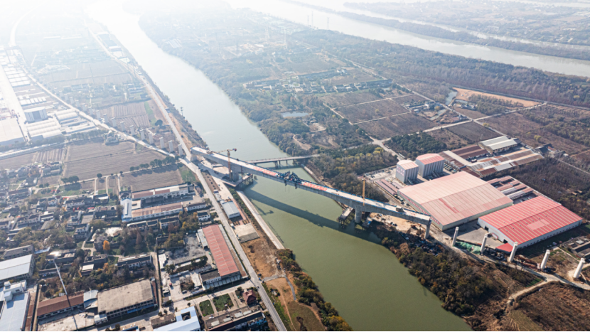 12月6日,北沿江高铁(沪渝蓉高铁上海至南京至合肥段)通泰扬特大桥跨太平河桥实现合龙。