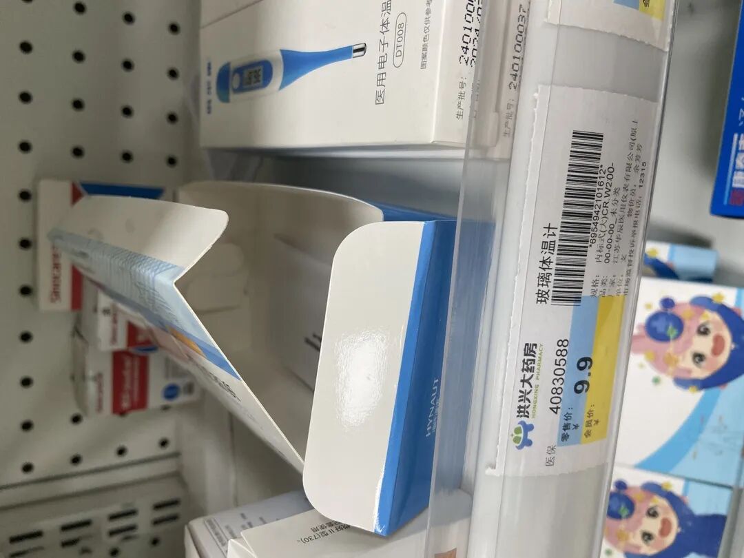 在价格方面,记者走访发现,目前药店在售的体温计以无汞和电子体温计为主。多家药店工作人员表示,传统水银体温计已停售,价格虽相对便宜,但已基本无货;部分价格较低的无汞体温计同样出现缺货情况。当前较为常见的是标价26.9元左右的无汞体温计,以及售价40多元的电子体温计,均有现货供应。