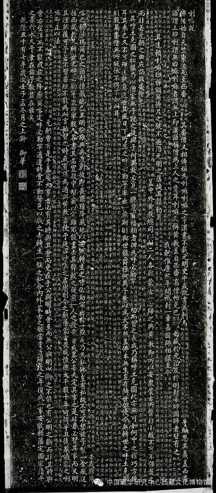 ▲雍和宫中的乾隆皇帝御制《喇嘛说》碑文拓片,碑文记载了实施金瓶掣签的必要性。(图片来源:中国藏学研究中心西藏文化博物馆)