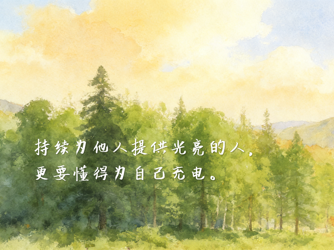 真正的关怀不是掏空自己,而是在确保内心尚有温度的前提下,从容地分享温暖。温暖不等于耗尽自己。在倾听他人之前,先聆听自己的心跳;在安抚世界之后,记得给自己一个拥抱。这份自我关怀不是退却,而是为了走更远的路。如同灯芯需要不时修剪,我们给予温暖的能力也需要被细心养护。