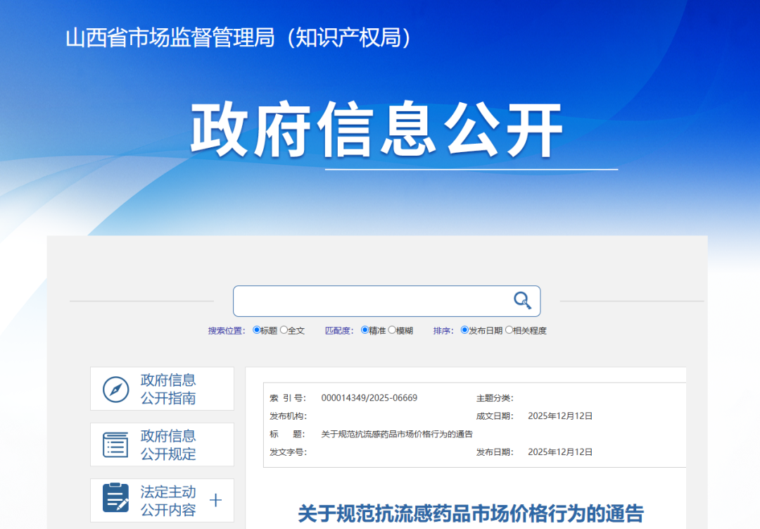 山西省市场监督管理局近日发布《关于规范抗流感药品市场价格行为的通告》,《通告》称,当前,山西省流感疫情处于季节性上升阶段,抗流感药品需求激增,为规范抗流感药品市场价格行为,减轻患者用药负担,依据《中华人民共和国价格法》《消费者权益保护法》《价格违法行为行政处罚规定》《明码标价和禁止价格欺诈规定》等法律法规规定,对全省各医疗机构及药品经营者明确列出十项禁止行为,包括: