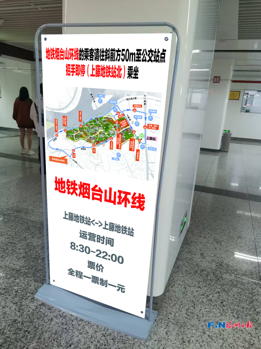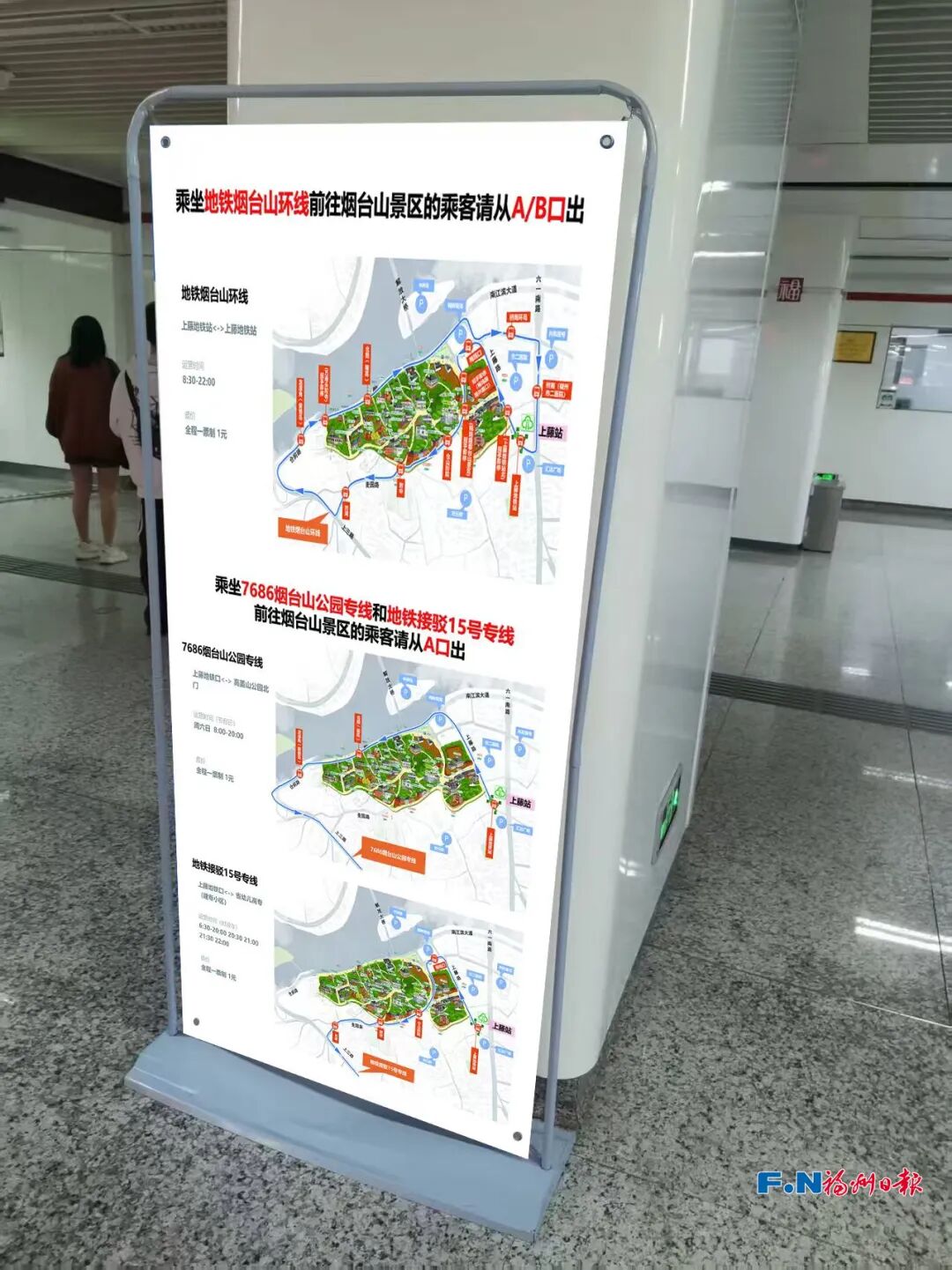 为解决游客“找车难”问题,福州市交通运输部门在引导标识建设上精准发力。在上藤地铁站出口处,新增设了多面清晰的指引牌,详细标注了上述3条接驳线路的线路走向、运营时间、途经站点及票价等核心信息,并明确引导前往烟台山的游客从A口或B口出站,便于快速换乘。同时,地铁烟台山环线沿线各站点也已增设环线示意图,为市民游客规划行程提供直观参考。