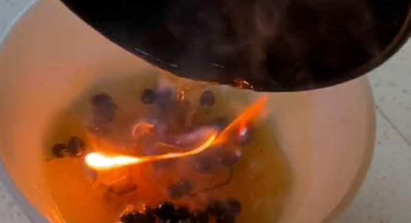 天津一女士在家炸花椒油时,油锅高温后突然起火,因操作不当,她将热油倒入碗中,碗无法承受瞬间的高温与冲击当场破裂,导致热油飞溅,上演 “碗炸油溅” 的惊险场面。