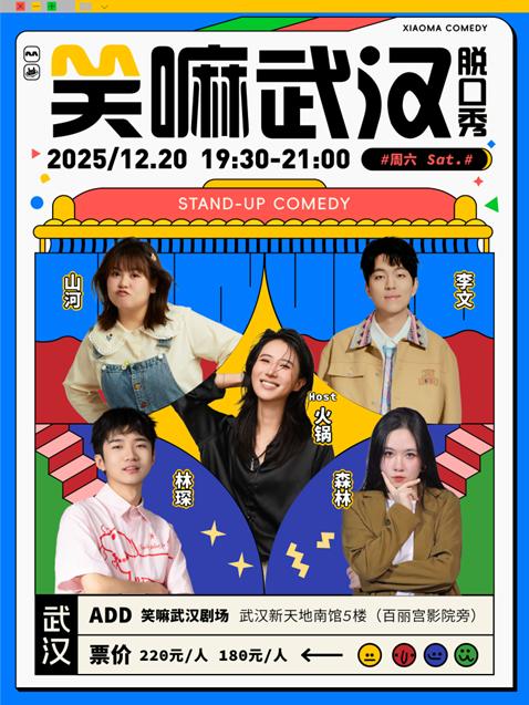 笑嘛喜剧脱口秀专场则安排在12月20日19:30及12月21日16:00于武汉新天地壹方南馆举行。