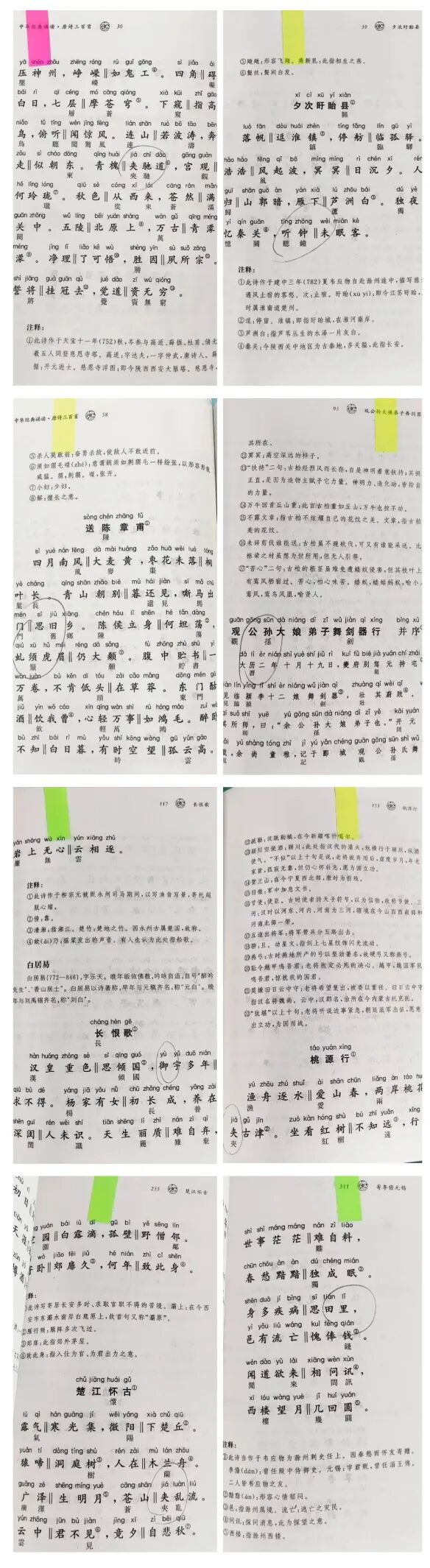 现说明如下:该版《唐诗三百首》是“中华经典诵读”丛书之一种,2012年第1次印刷。当时听取一线老师根据教学要求所提出的建议,我们在原诗的正文下面标出了对应的繁体字。因为需要重新倒版和简繁转换,致使出现了一些讹误,后来每次重印时虽也做过零星修订,但都不彻底。盛大林先生指出的“夹”误作“涛”,系改稿时全书替换操作失误所致;“里”误作“裏”、“大历”误作“大歷”等,系简繁直接转换造成。该版本在2019年进行过一次全面修订(第1版第9印),上述问题大部分已经改正(如下图):
