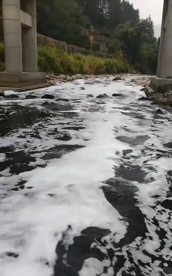 12月8日,广西桂林龙胜县村民反映,当地一家洗发水厂长期向金江河排放污水,以至于河面漂浮大量白色泡沫状物质,并散发化学香精气味。
