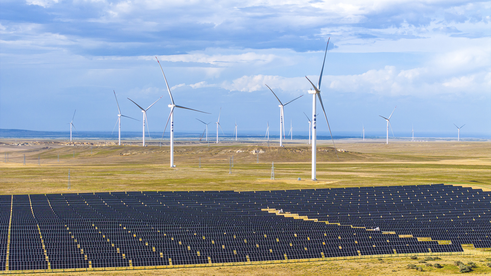 这是2025年7月1日在新疆阿勒泰地区吉木乃县拍摄的50万千瓦时风电项目配套输电线路建设现场(无人机照片)新华社发(努尔别克·努尔曼 摄)