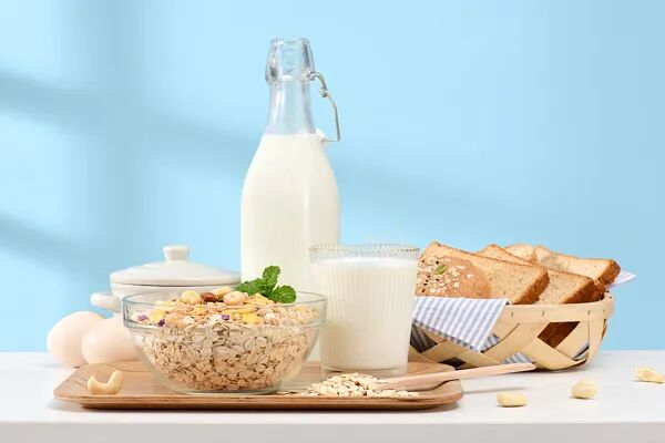 在食用牛奶、鸡蛋的同时,搭配少油少糖的面包、馒头或燕麦等主食帮助补充能量,搭配黄瓜、西红柿等帮助补充维生素和膳食纤维。