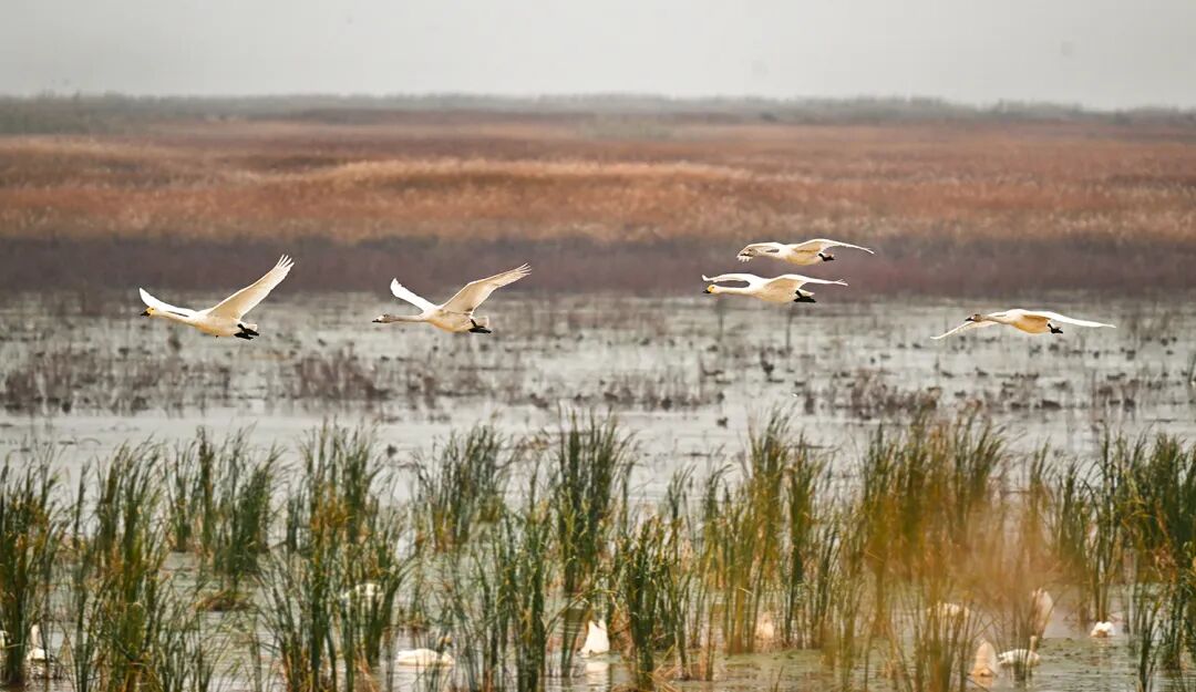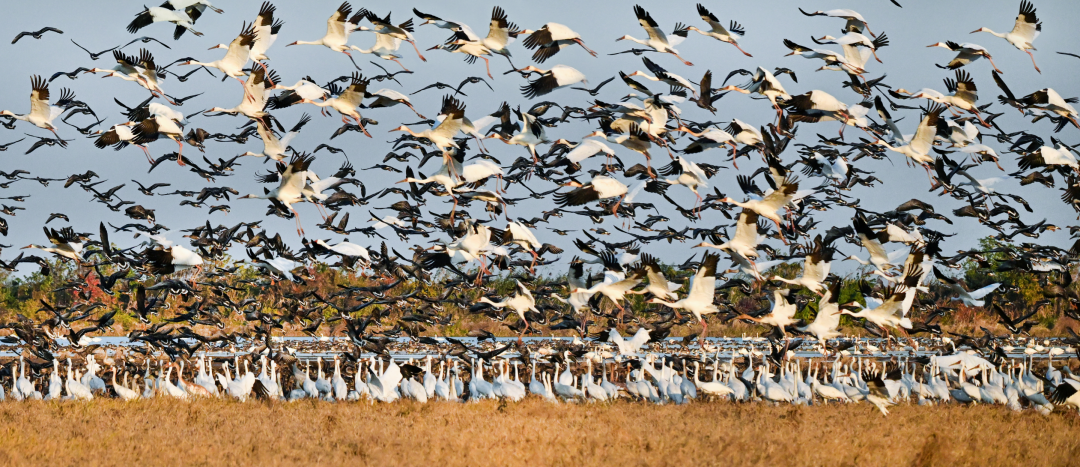 这里,是它们冬日的家园。据统计,每年有超过70万只候鸟在此越冬,其中包括全球98%以上的白鹤、80%的东方白鹳、70%以上的白枕鹤,以及数以万计的鸿雁、小天鹅、白琵鹭等珍稀物种。它们或栖于浅滩,或翔于湖面,或翩跹于芦苇荡中,构成了一幅“飞时遮尽云和月,落时不见湖边草”的壮美画卷。