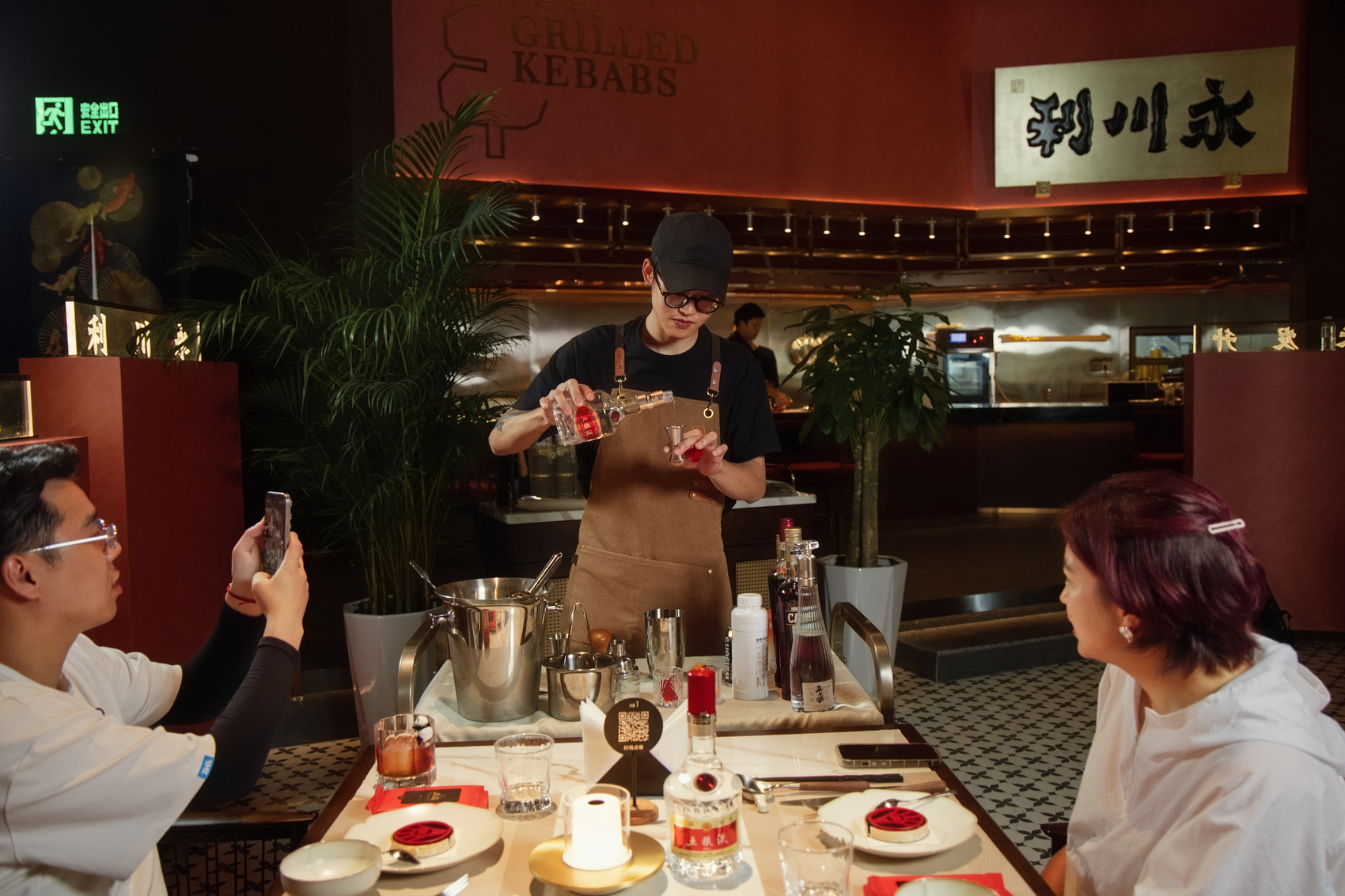 面向Z世代打造的“五粮・炙造”潮饮体验店,以“白酒+创意炙烤+特调酒饮”为核心,推出一系列“出圈”产品:如“轻红擘荔枝”五粮液特调鸡尾酒,以清新果味平衡酒体烈感,受到消费者热捧;“炙烤五粮M5牛排”凭借酒香渗透的独特风味,日均销量突破50份;加上文创冰激凌、联名咖啡等轻量化产品,该店成功吸引25—35岁年轻客群。