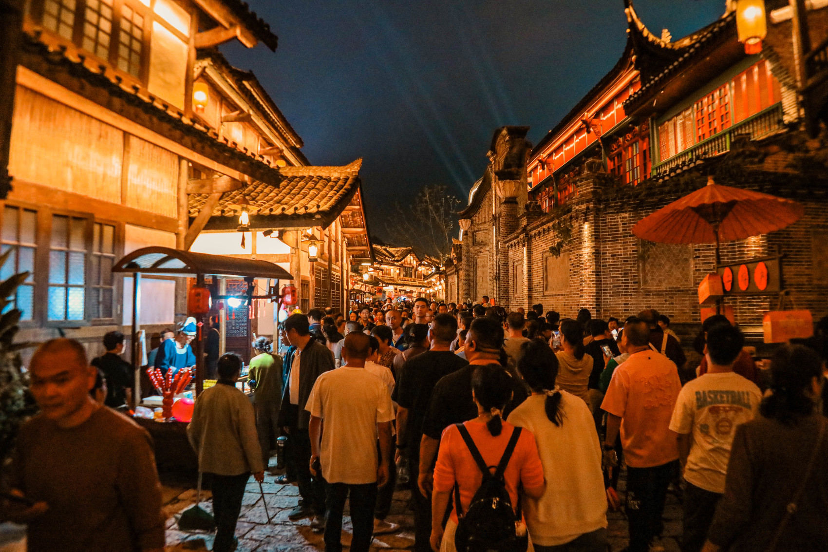 在地化融合是这一生态的根基。五粮液将宜宾“长江首城”的文化基因融入体验场景:冠英古街联动推出《僰道长歌4.0》非遗演艺,将酿酒传说与本土民俗巧妙融合;街区市集还汇聚宜宾燃面、李庄白肉等地方美食,让游客从舌尖感知风土人情,带动当地餐饮、住宿等相关产业增收,促进“以酒兴城、城酒共荣”的双向赋能。