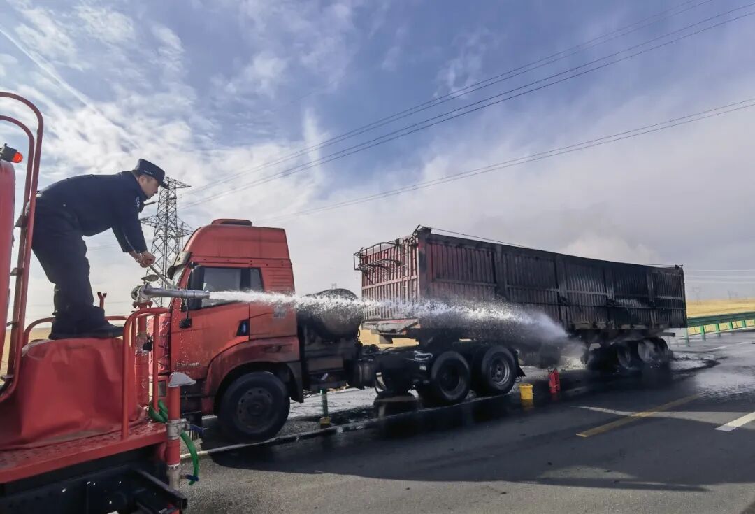 货车突发火情 移民管理警察紧急救助 12月14日,内蒙古巴彦淖尔川井边境派出所接到报警称,甘海高速口岸至中旗方向72路标处一辆货车突发火情。该所第一时间调配警力赶赴现场,联合路政部门划定警戒范围、疏导周边车辆,并用水枪灭火,经过1小时的合力奋战,明火被成功扑灭,现场未造成人员伤亡。(文:李文超/图:孟和那生)