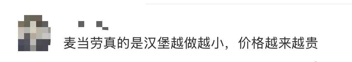 对此,有网友表示,麦当劳价格越来越贵,分量却在“缩水”↓