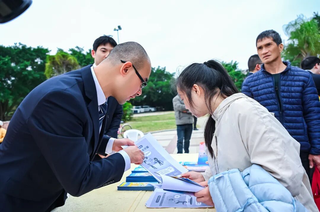 在便民服务区,反诈知识转盘游戏让金融宣教变得更加有趣而接地气,福建建行“劳动者港湾”联动渔溪镇政府及渔溪镇派出所等单位的工作人员带来了实用的政策宣传与公众宣教。在趣味互动中,反诈知识变成了守护安全的力量。