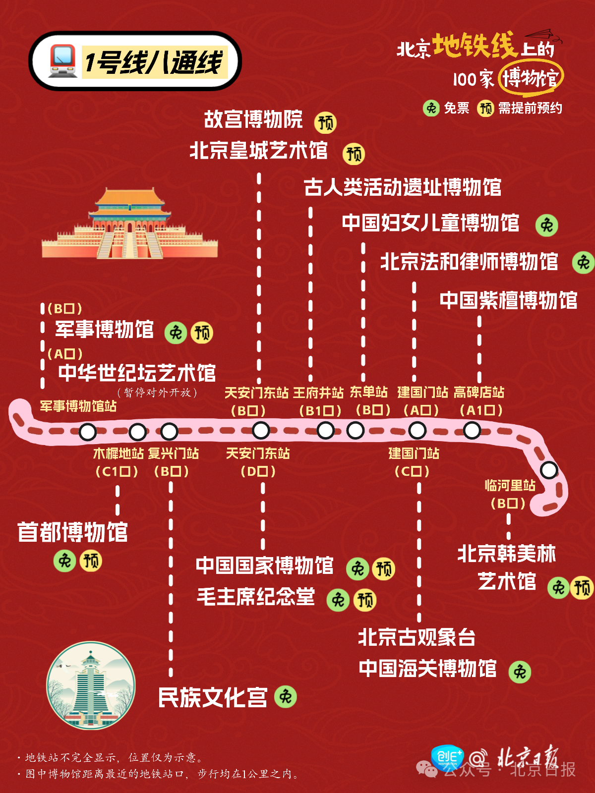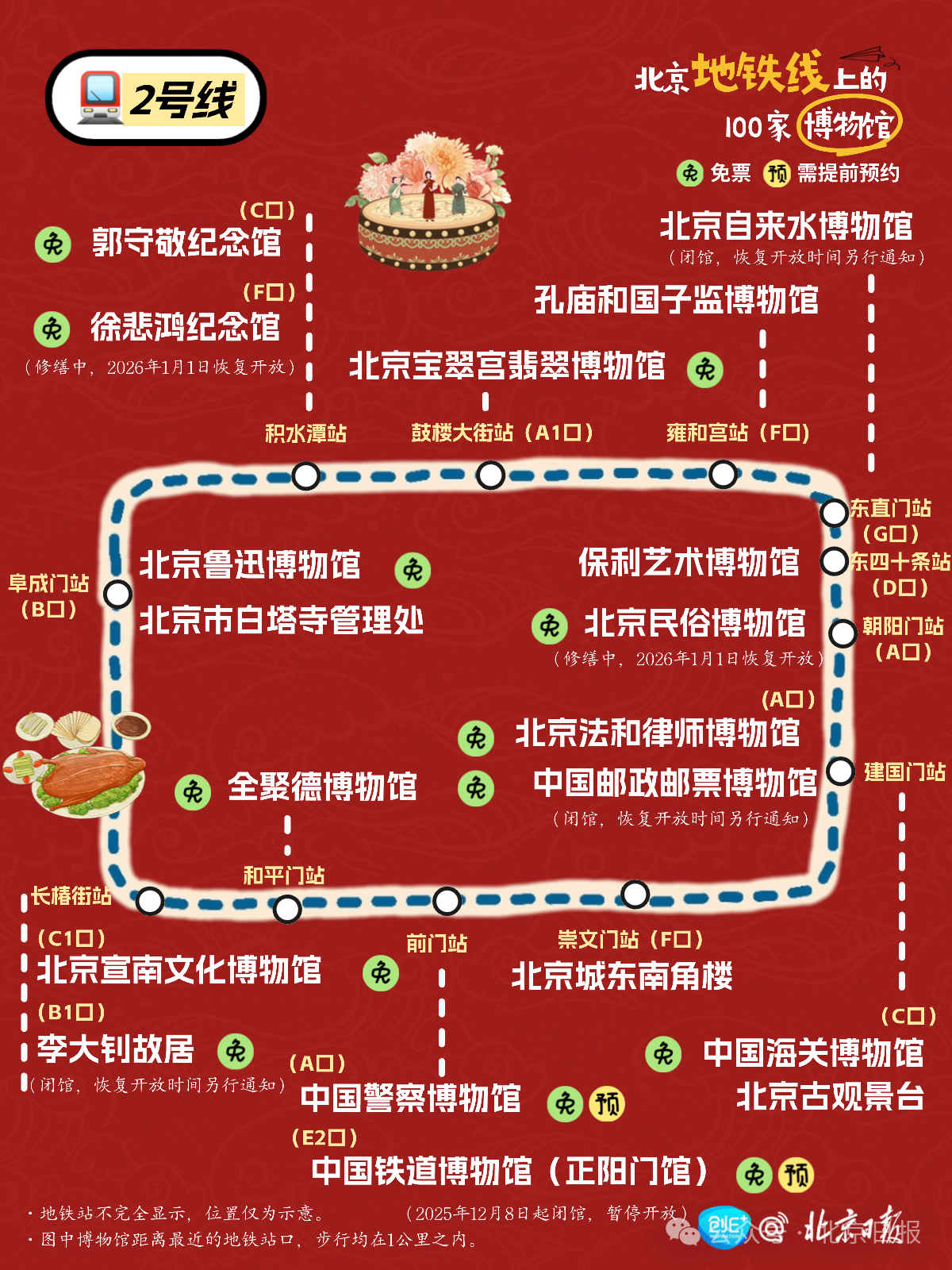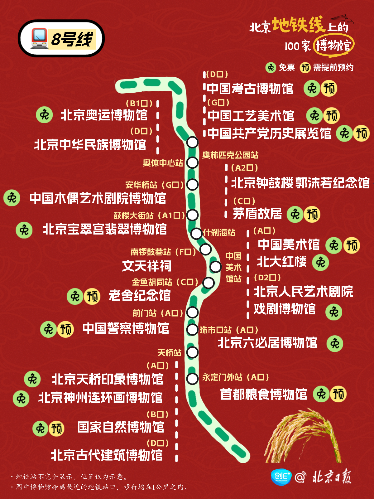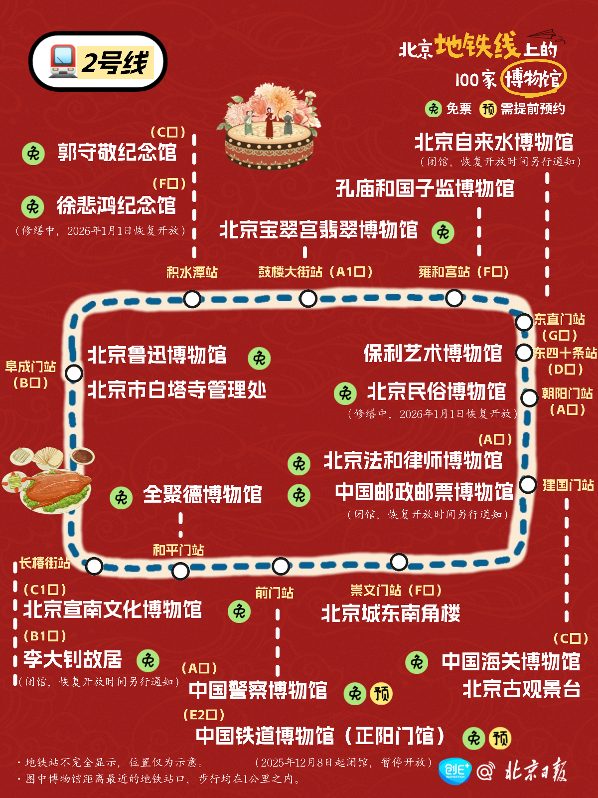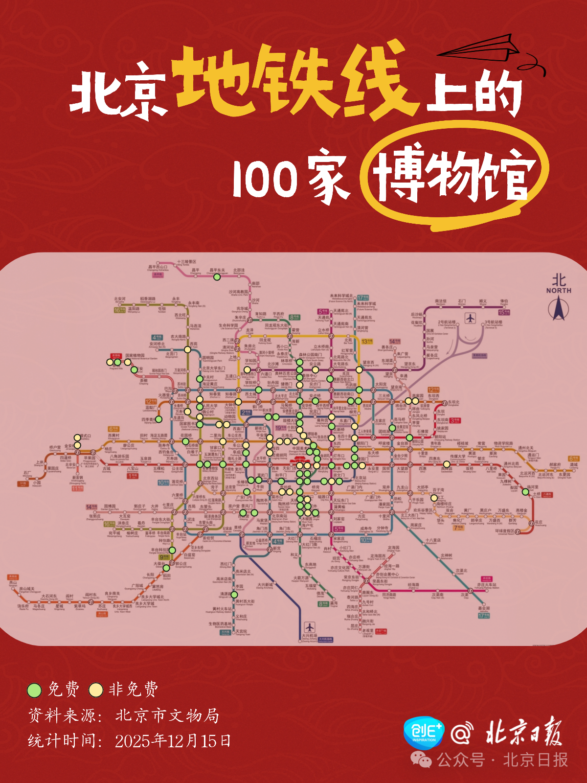 寒冷的北京冬日,最适合躲进博物馆,在热乎乎的暖风中,遇见千年长河。搭乘北京地铁,能抵达多少家博物馆?我们以出地铁口后步行1公里内为筛选标准,梳理出了整整100家!其中,最“富有”的北京地铁8号线,步行一公里内可抵达的博物馆多达22家,仅是天桥站,周围就有4家博物馆!收藏这份100家博物馆海报,这个冬日周末,慢慢打卡!【⚠️:博物馆、纪念馆可能基于修缮、布展、改扩建等原因短期闭馆,建议大家去参观前,先拨打咨询电话或在官网、官方公众号等平台查询博物馆、纪念馆开放情况,再前往参观。】北京日报(ID:Beijing_Daily)出品监制:刘昊制作:苏越 李俊瑶实习生:胡万启