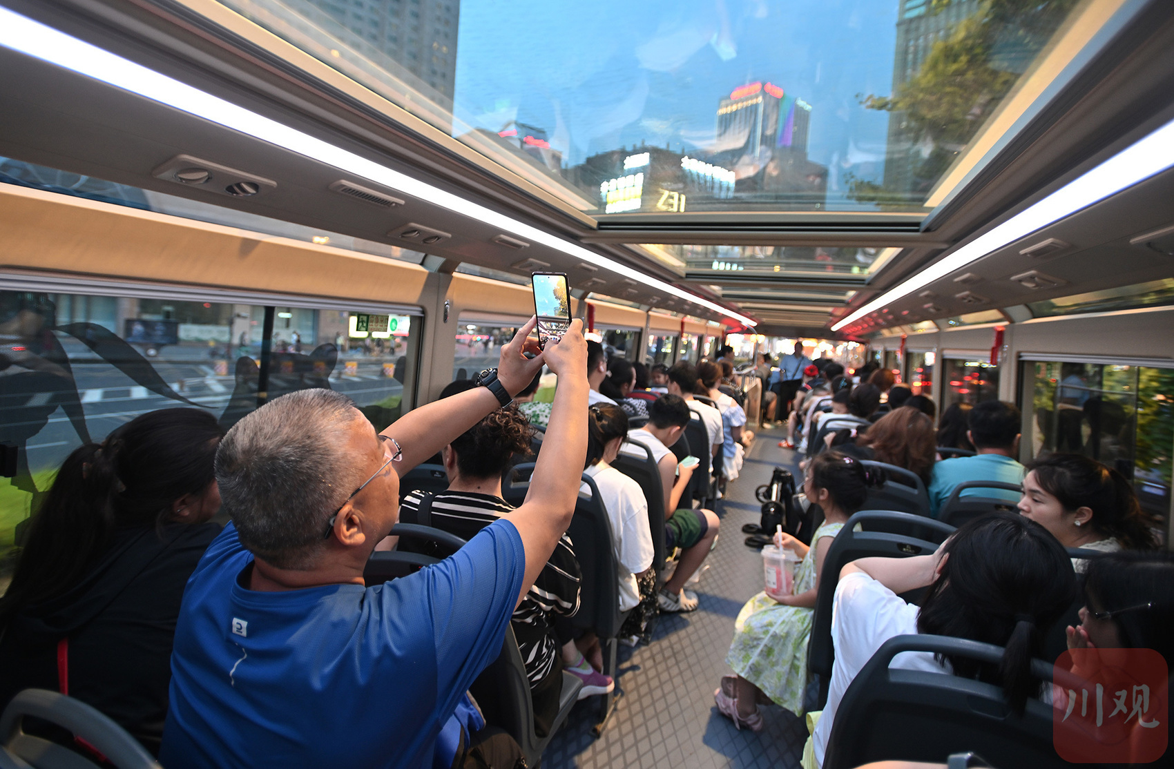 2025年7月18日傍晚,消失多年的双层巴士以全新“天幕”造型重返成都街头,化身夜游观光车,一路串起文化地标,为城市再添流动风景。C视觉签约摄影师 华小峰 摄