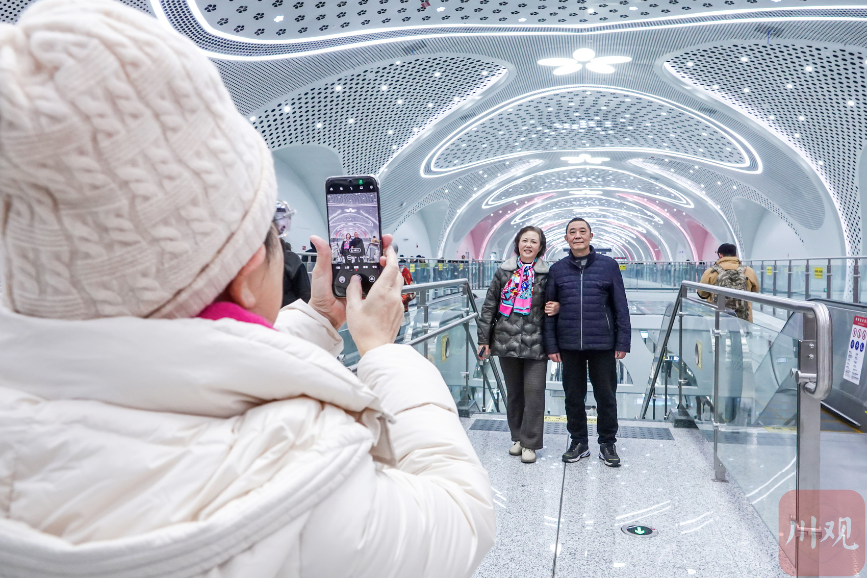 2025年12月16日上午10点,成都地铁13号线一期、30号线一期正式开通初期运营,不少市民抢先前往各站点体验打卡。至此,成都轨道交通线网运营里程突破750公里,稳居全国轨道交通运营里程第四。13 号线一期为成都首条交流制式全自动运行城轨快线,全线设21座车站,可与9条运营线路便捷换乘,完善轨道网络布局、缓解东西向交通压力。