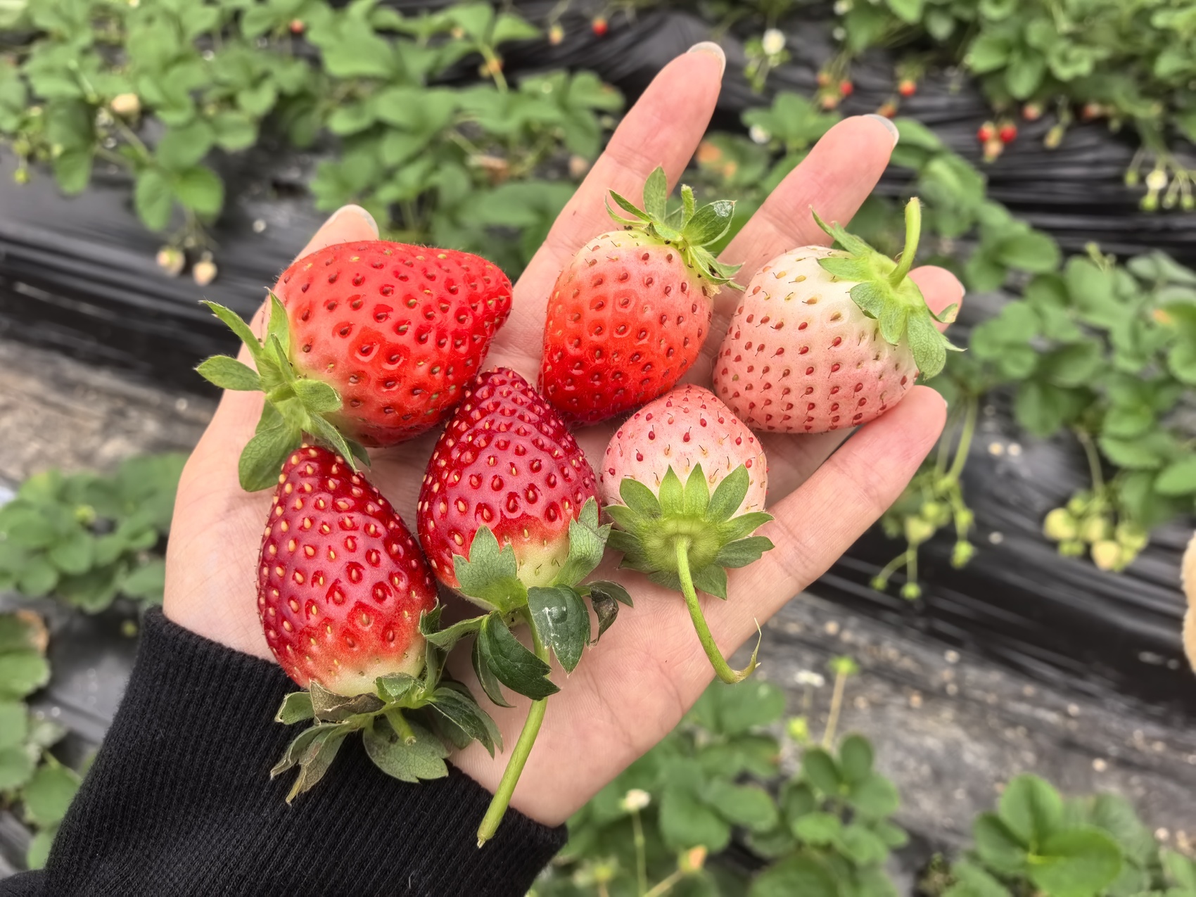 左下:黑珍珠;左上:红颜;右:粉玉1号。