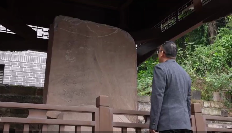 宜宾的三江口,又称合江门。当长江水从这里奔涌向前,也引来无数野生的鱼群聚集,成为游客必打卡的景观。沿着合江门广场旁的小道一路走去,走到明代叙州城墙旧址墙基处,就会发现一块充满岁月痕迹的石碑静静矗立在亭中,似在诉说这里曾发生过的沧桑往事。这,便是宜宾市“四普”工作中新发现的不可移动文物——唐代韦皋纪功碑。