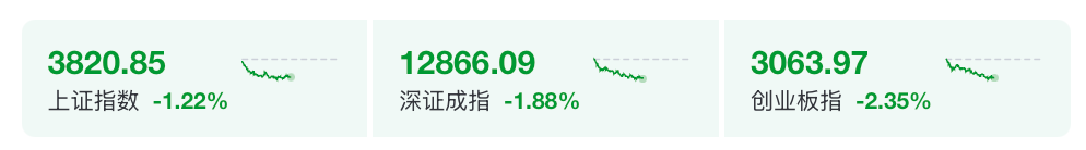 12月16日上午,A股三大股指集体下跌,创业板指、科创50指数均跌超2%。截至午间收盘,沪指回落至3820.85点,跌1.22%,深证成指跌1.88%,创业板指跌2.35%。