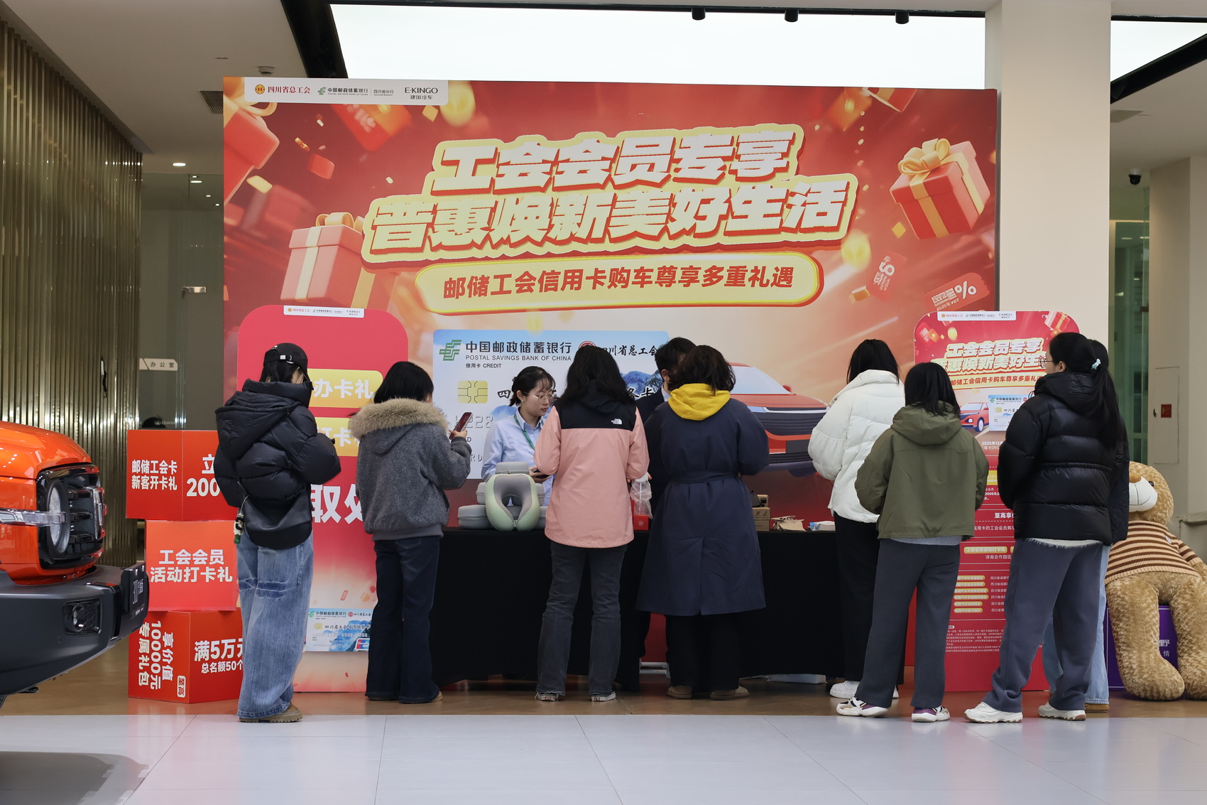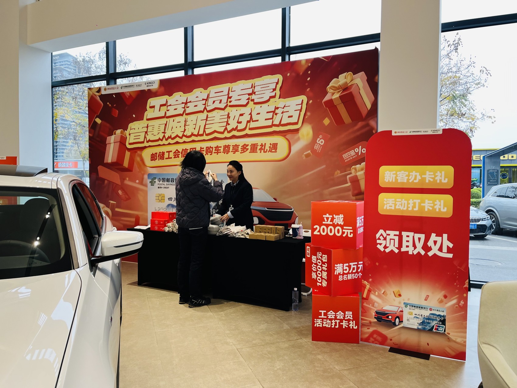12月的天府大地寒意初显,但成都建国汽车贸易有限公司(以下简称建国汽车)的各大园区内却暖意融融。一场由四川省总工会、中国邮政储蓄银行股份有限公司四川省分行(以下简称邮储银行四川省分行)联合建国汽车等重点经销商共同推出的“邮储工会信用卡购车尊享多重礼遇”专项活动正在如火如荼开展中。
