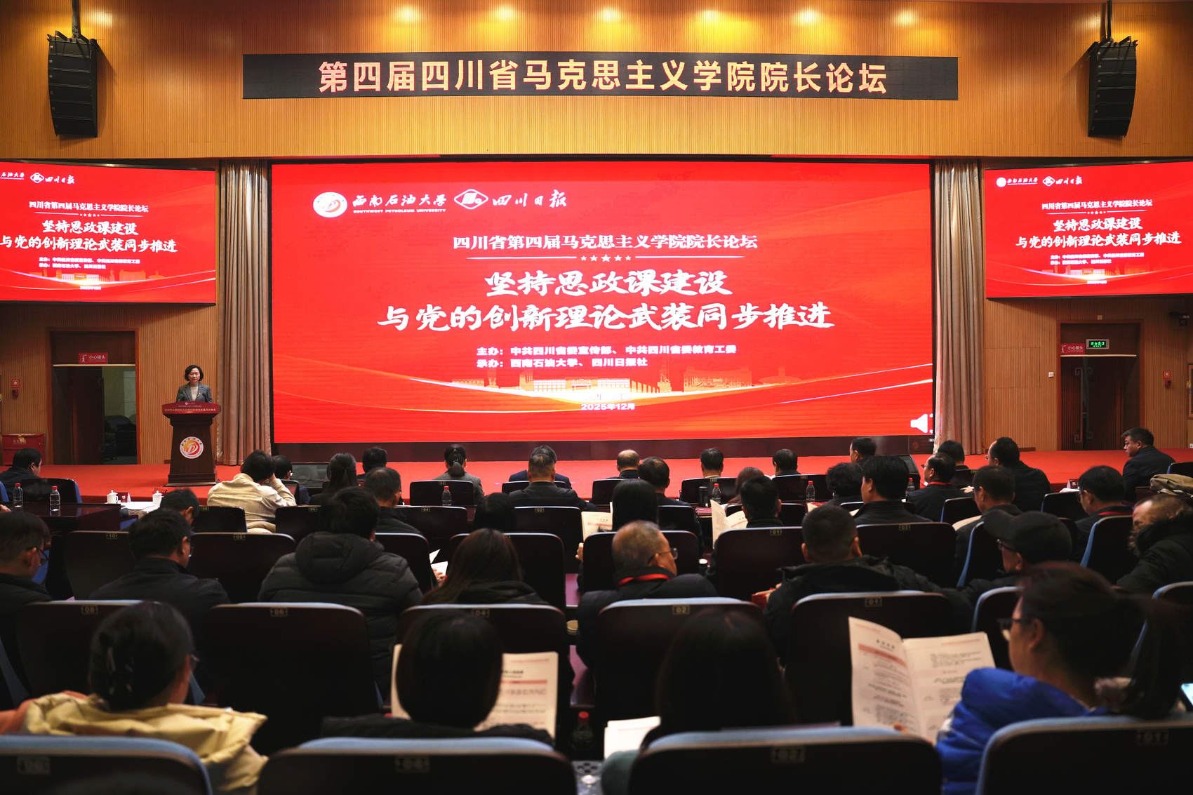 12月16日上午,四川省第四届马克思主义学院院长论坛在西南石油大学成都校区开幕。论坛由四川省委宣传部、省委教育工委主办,西南石油大学、四川日报社承办。全国知名专家学者及省内外高校、党校、社科研究机构马克思主义学院(思政教研部)相关负责人,聚焦“坚持思政课建设与党的创新理论武装同步推进”主题深化研讨交流。