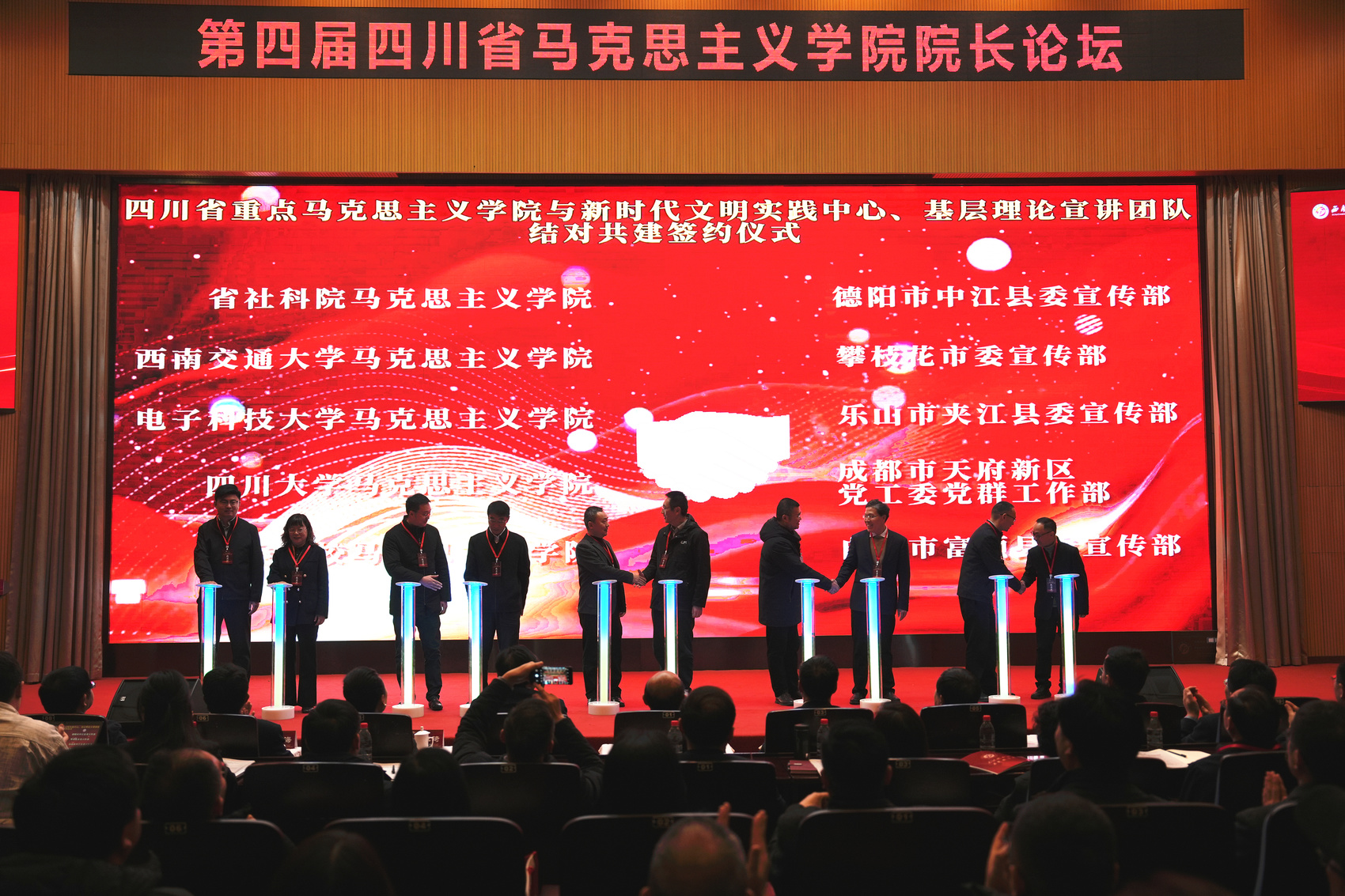 论坛开幕式上,四川省委党校马克思主义学院、省社科院马克思主义学院、四川大学马克思主义学院等10所马院,分别与自贡、德阳、乐山、攀枝花等地新时代文明实践中心及基层理论宣讲团队签约,探索校地协同赋能文明实践建设的新路径,助力党的创新理论落地生根、知行合一。