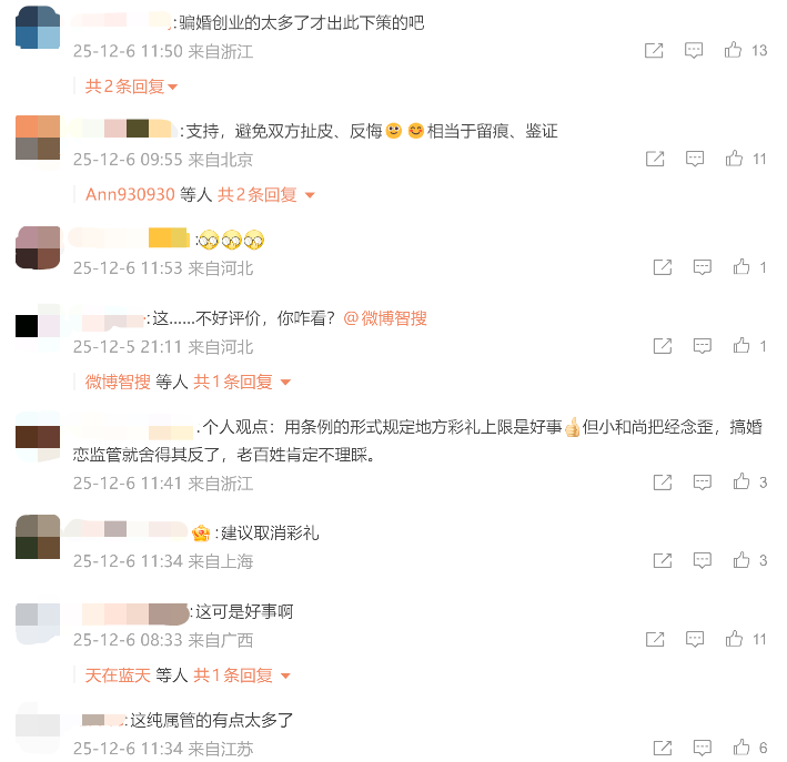 有网民对相关举措表达支持,认为有关部门能够参与见证可以有效减少婚姻纠纷矛盾;但也有网民意见认为婚姻嫁娶是家庭和个人私事,政府无权过度干预。