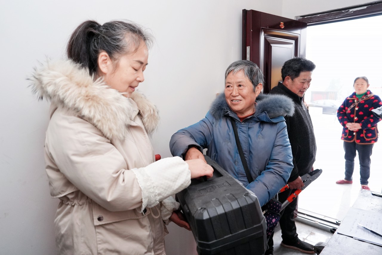 当天早晨8点不到,村民们就围了过来,借工具的、看新鲜的、给外地子女打电话“报喜”的,笑声挤满了小屋。