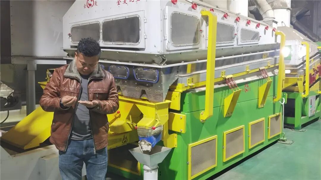埃及客商伊斯兰姆在五原县选购葵花籽。