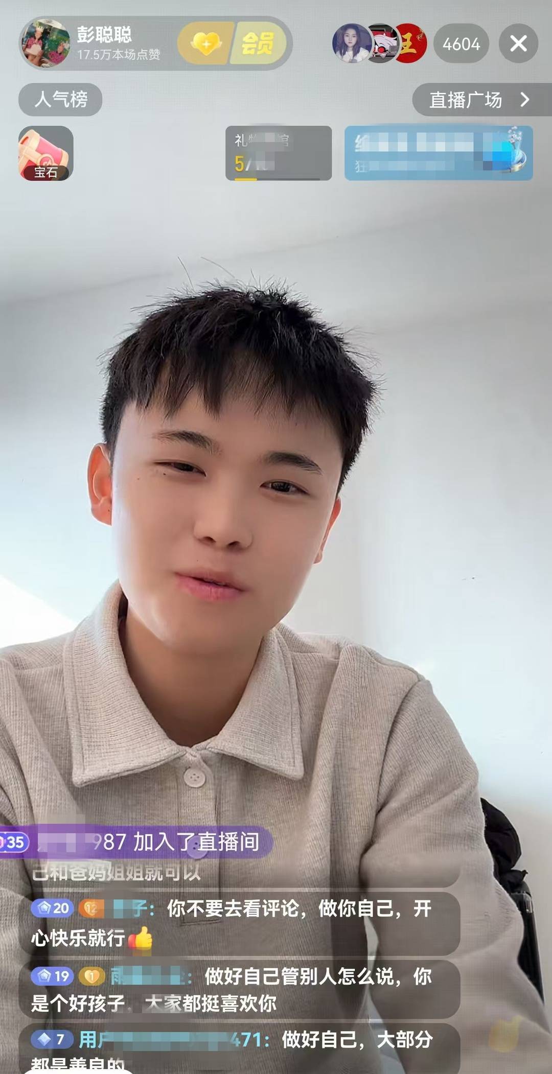 12月16日中午,结束采访后,彭聪聪去开启了直播,在直播中随意聊着自己的经历。