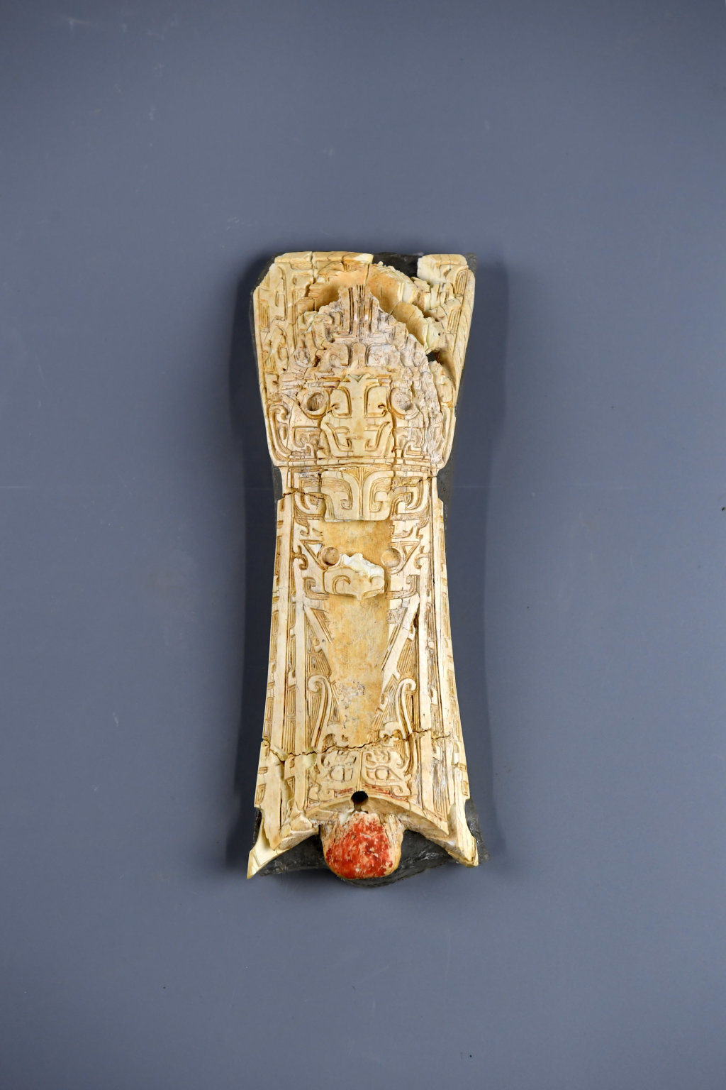 12月8日拍摄的陕西清涧瓦窑沟墓地出土雕花象牙器。