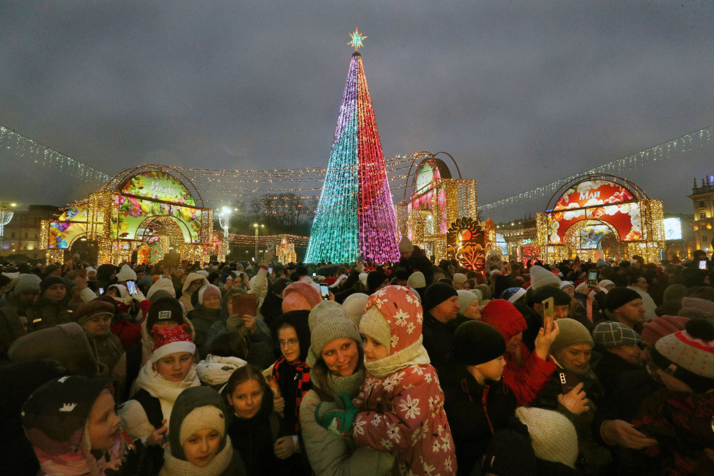12月15日,在白俄罗斯明斯克,人们参加新年树亮灯仪式。