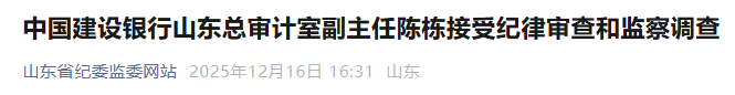 中国建设银行山东总审计室副主任陈栋涉嫌严重违纪违法,目前正接受中央纪委国家监委驻中国建设银行纪检监察组纪律审查和东营市垦利区监委监察调查。