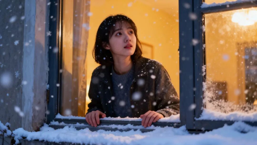 在窗边守候雪花飘落