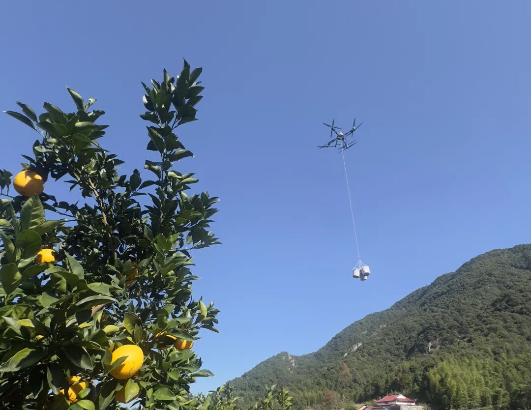 一望无际的脐橙树间,无人机成为忙碌采果的“新农人”,以往果农肩挑背扛的景象正被科技逐渐改变。陡峭的果园里,无人机将采摘下的脐橙从果树下直接送达山路旁的货车前,大大节约了人力成本和运输时间。正在使用农业无人机进行采果的无人机驾驶员介绍,脐橙采收季他们十分忙碌,每天都会奔走于不同的果园,从清晨开始采果至午后,在一次次的无人机起落间为果农们送来丰收的喜悦。