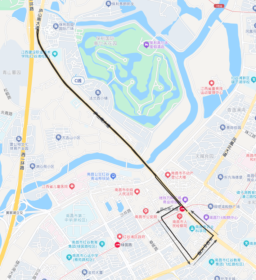 去:庐山南大道地铁站1号口—庐山南大道—瀛上老路口(瀛上路口公交站下客)—舍里甲老转盘处;