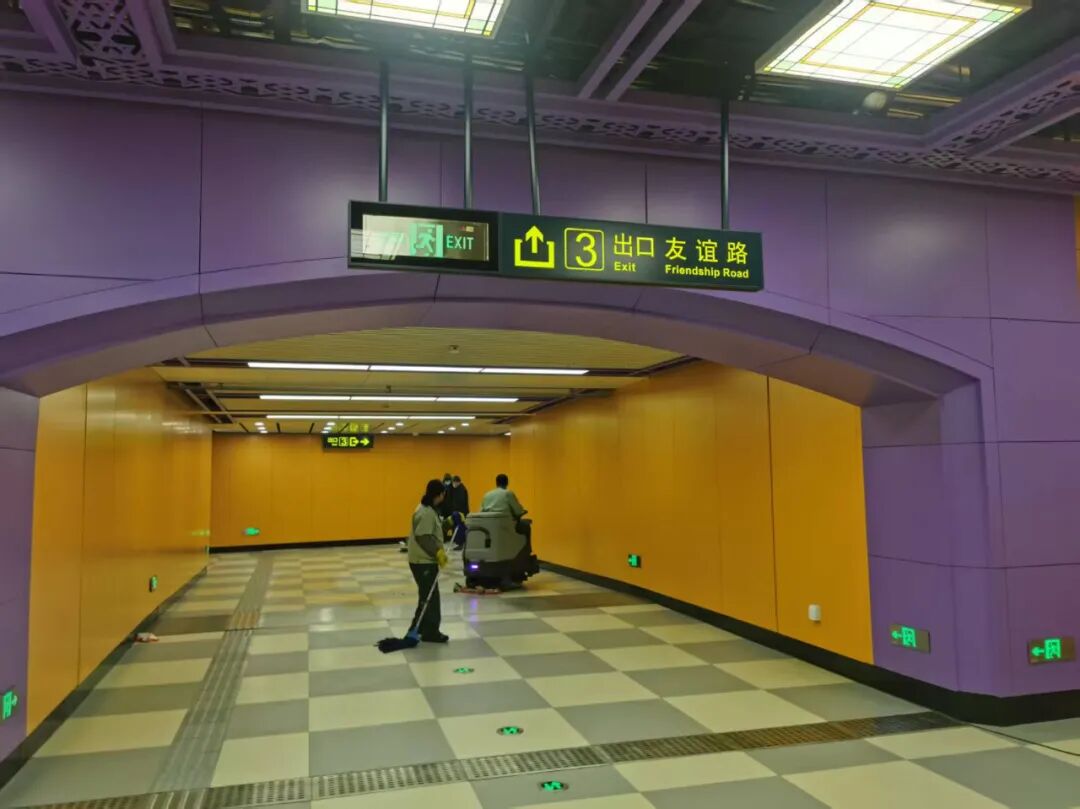 12月16日,记者在上海街地铁站3号口看到,保洁人员正在对楼梯、过道等处进行精细清理,还有工人对各种设施进行检查、测试。通往站厅层的通道里,地面和墙体都已经清理干净。