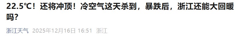 穿过清晨的寒凉,午后阳光又把浙江大地“烘”得暖洋洋,让人忘了这是“大雪”节气。昨天(12月16日),我省大部最高气温回升至18-22℃,而就在前一天省会杭州早晨最低气温只有0.2℃。