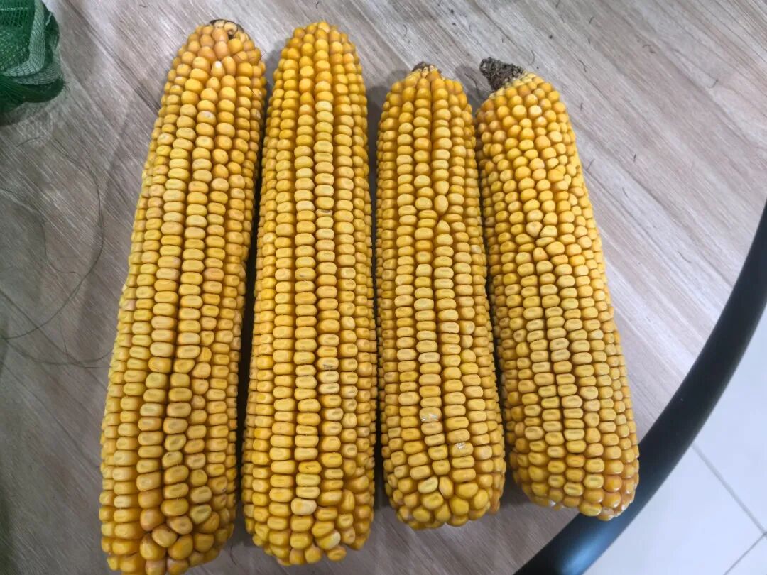 2025年玉米生产气象服务效益评价对比试验中“试验田”产玉米(左1、2)与“对照田”产玉米(右1、2)对比。摄影:张广梅