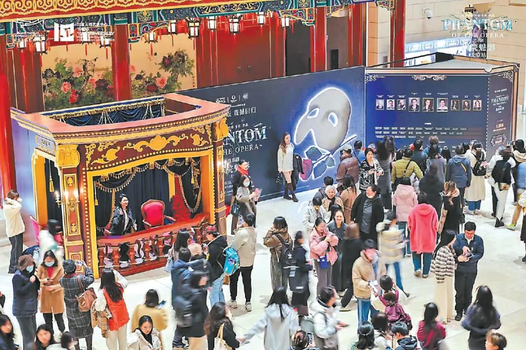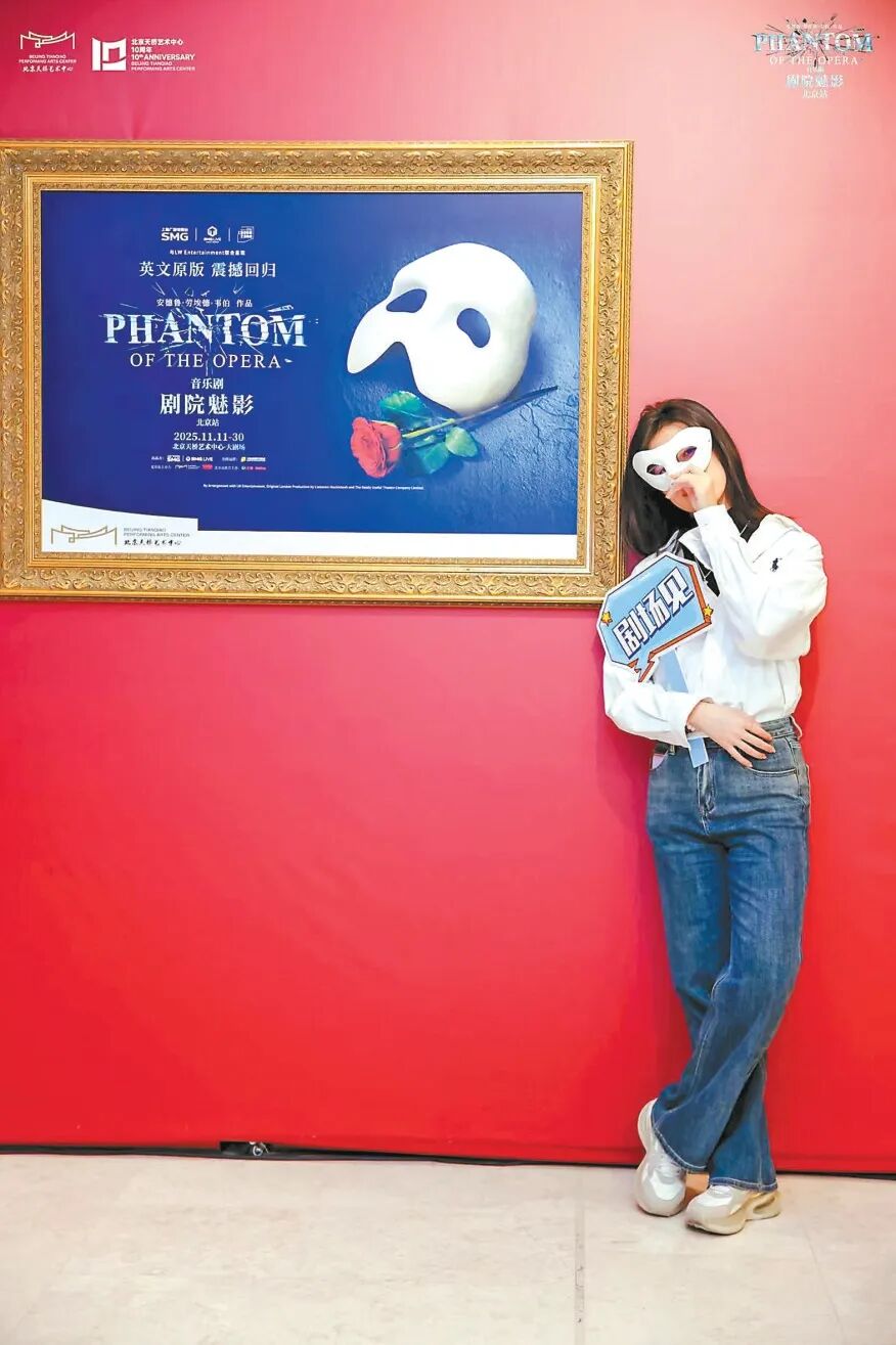 “十年间,英文原版音乐剧《剧院魅影》的三次到访,正好见证了北京天桥艺术中心从无到有的发展。”北京天桥艺术中心总经理杨树聪作为亲历者深有感触,“最早我们只是简单摆个背板卖文创,观众除了看戏、拍照、买点产品,没有太多体验。今年我们把剧中的场景搬出来,让观众在外场就能沉浸其中。还做了大量实体物料,我们把现场的感受‘物化’,让观众们可以带走。”观众可以身着盛装,在剧场外复刻的“五号包厢”装置前打卡留念;或手持“魅影”特调咖啡,品尝面具造型蛋糕……这种从“看一场戏”到“经历一次完整文化体验”的升维,显著提升了观众黏性以及社交传播的自发性。“天桥”二字,在音乐剧爱好者心中俨然已经从一个地理名词,升级为一个富有情感联结的文化符号。