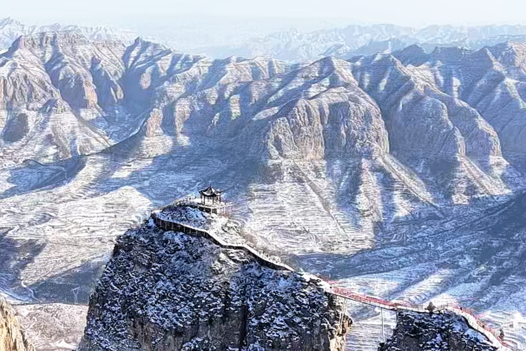 涉县太行五指山,千峰覆雪,意境天成。详情→