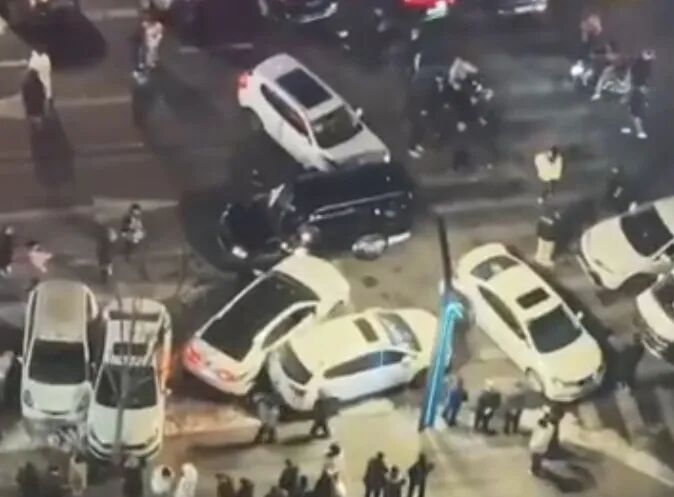 12月15日晚,一肇事司机驾驶黑色SUV与白色轿车在山西清徐县双湖水街会车过程中发生碰撞。