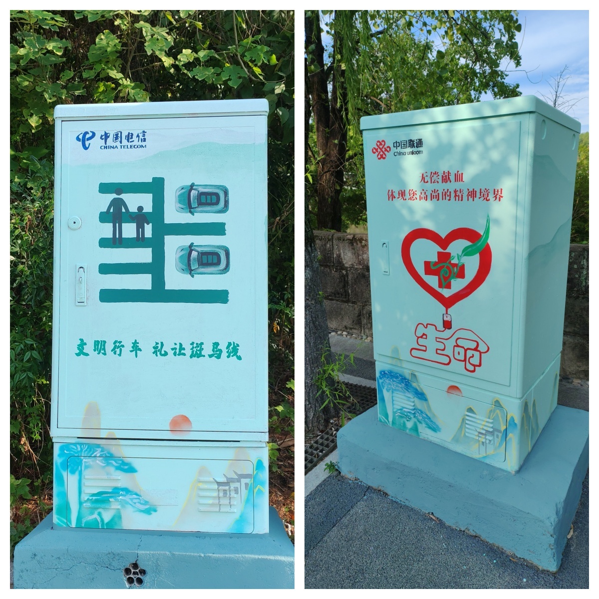 如今,这些曾经的“视觉污点”已成为黄山的一张张“文明名片”:延安路文旅街区的箱体绘着“诚信重于金”的标语,与商业氛围相得益彰;北海路的箱体融入“礼让斑马线”主题,潜移默化引导交通文明;新安大道的箱体以无偿献血为主题,传递公益正能量……走在城市街头,经常可见人们举起手机打卡拍照电表箱的身影,这些“会说话”的小箱体不仅扮靓了城市街角,更让市民在日常出行中接受文明熏陶,更成为了社交媒体上的热门话题,让文明新风通过网络持续扩散,实现了环境美化与文明培育的双重成效。