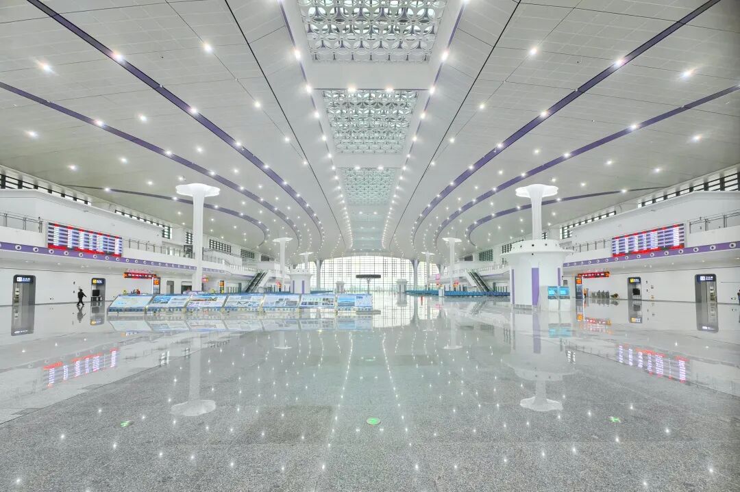 茂名南站位于茂名市电白区坡心镇,站房以“日出南海,海韵明珠”为主题,用现代的设计手法诠释了茂名滨海文化的特色。