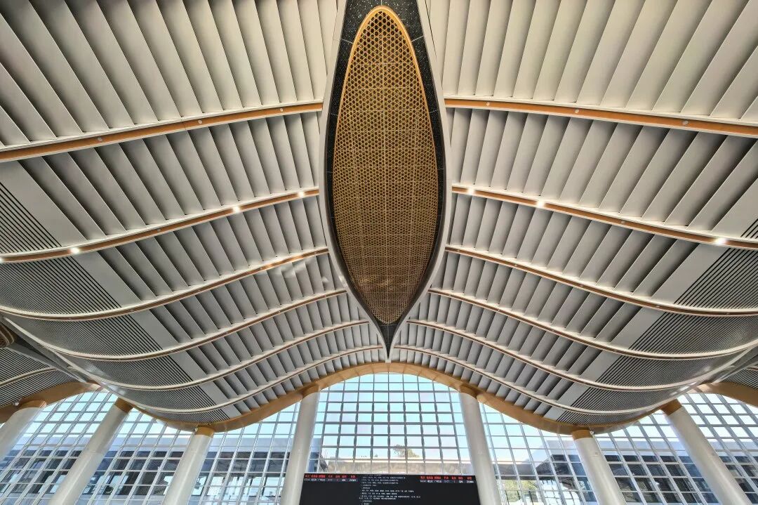 阳江北站位于阳江市江城区,设计理念为“海纳百川,缘结四海”,站房设计以阳江得天独厚的滨海地域文化内核为灵感源泉,用现代建筑设计表现“海纳百川、缘结四海”的江海精神内核以及独具特色的岭南文化情怀。
