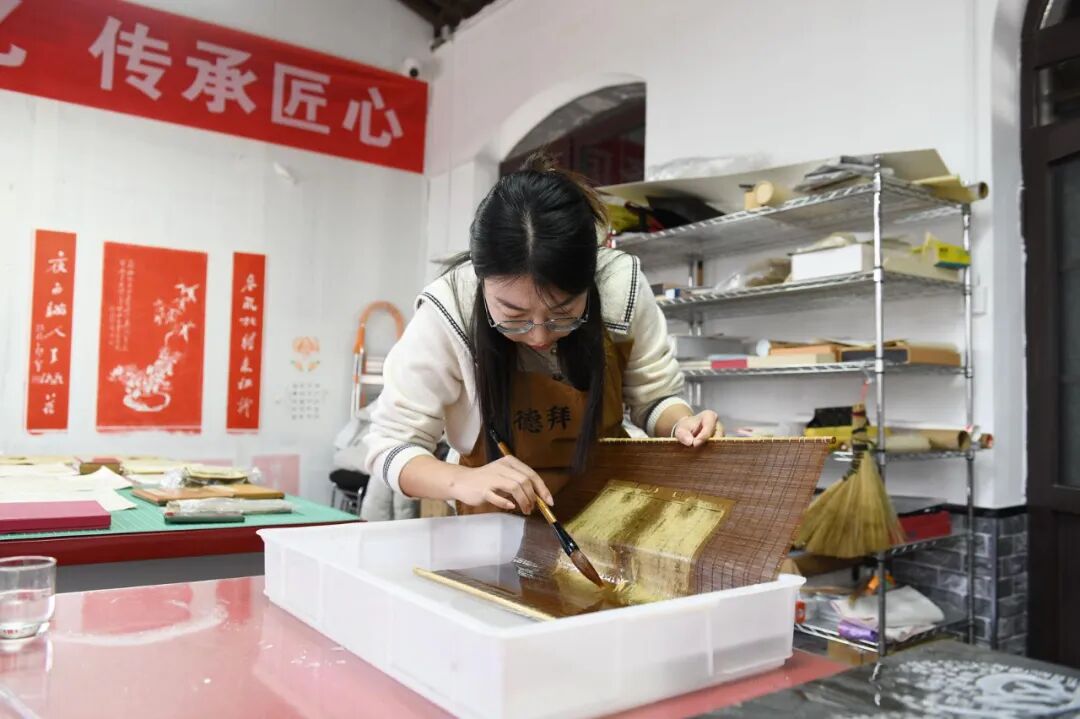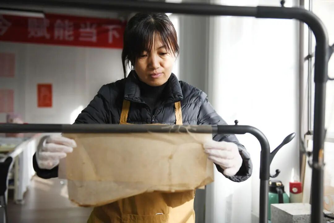 没有师傅,她就自学专业书籍;没有经验,就从基础工序反复练起。光是调配合适的浆糊,就试验了半个月。失败了重来,直到调出黏度适中、不易霉变的“秘方”。